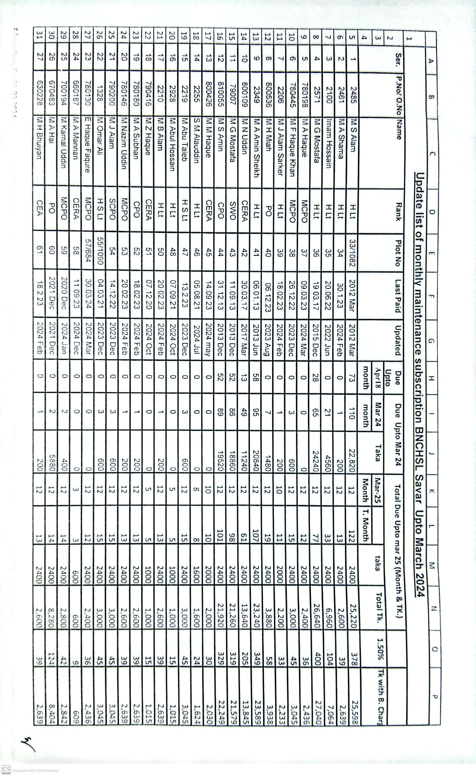 UPDATE LIST OF MONTHLY MAINTENANCE SUBSCRIPTION BNCHSL SA...
