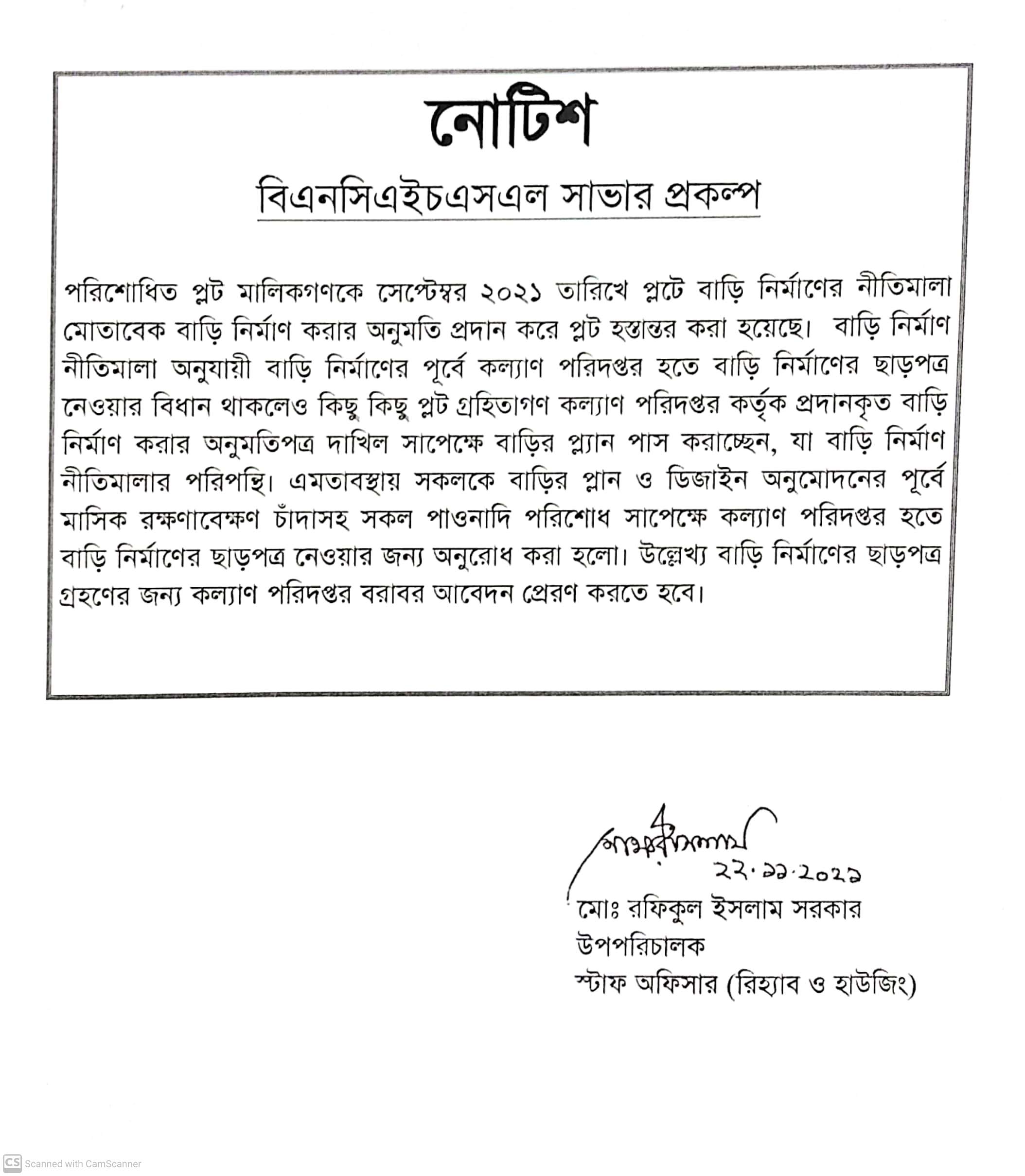 বাড়ি নির্মাণের ছাড়পত্র প্রদান প্রসংগে