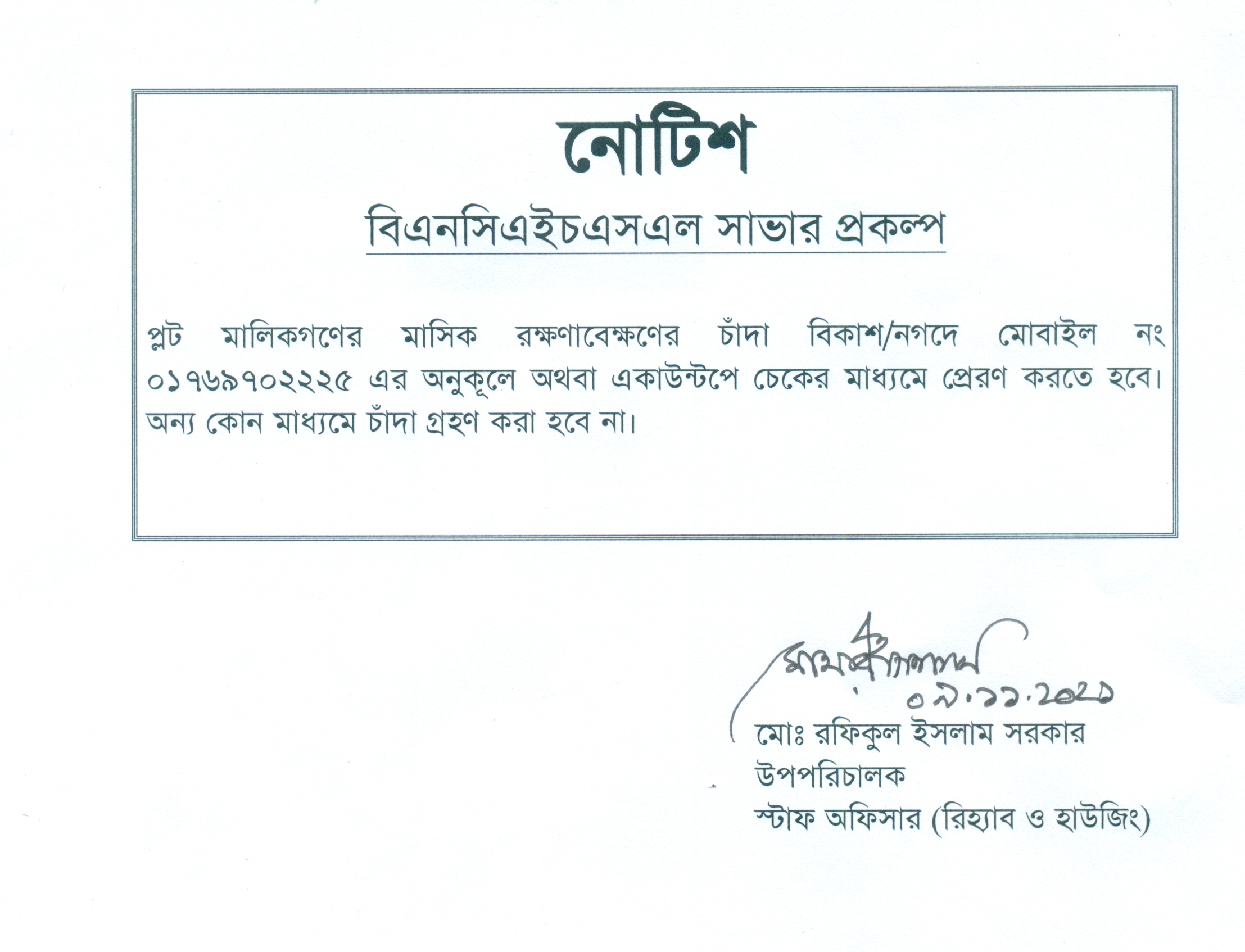প্লট রক্ষণাবেক্ষণ চাদা নগদ এবং বিকাশের মাধ্যমে পরিশোধ প্র...