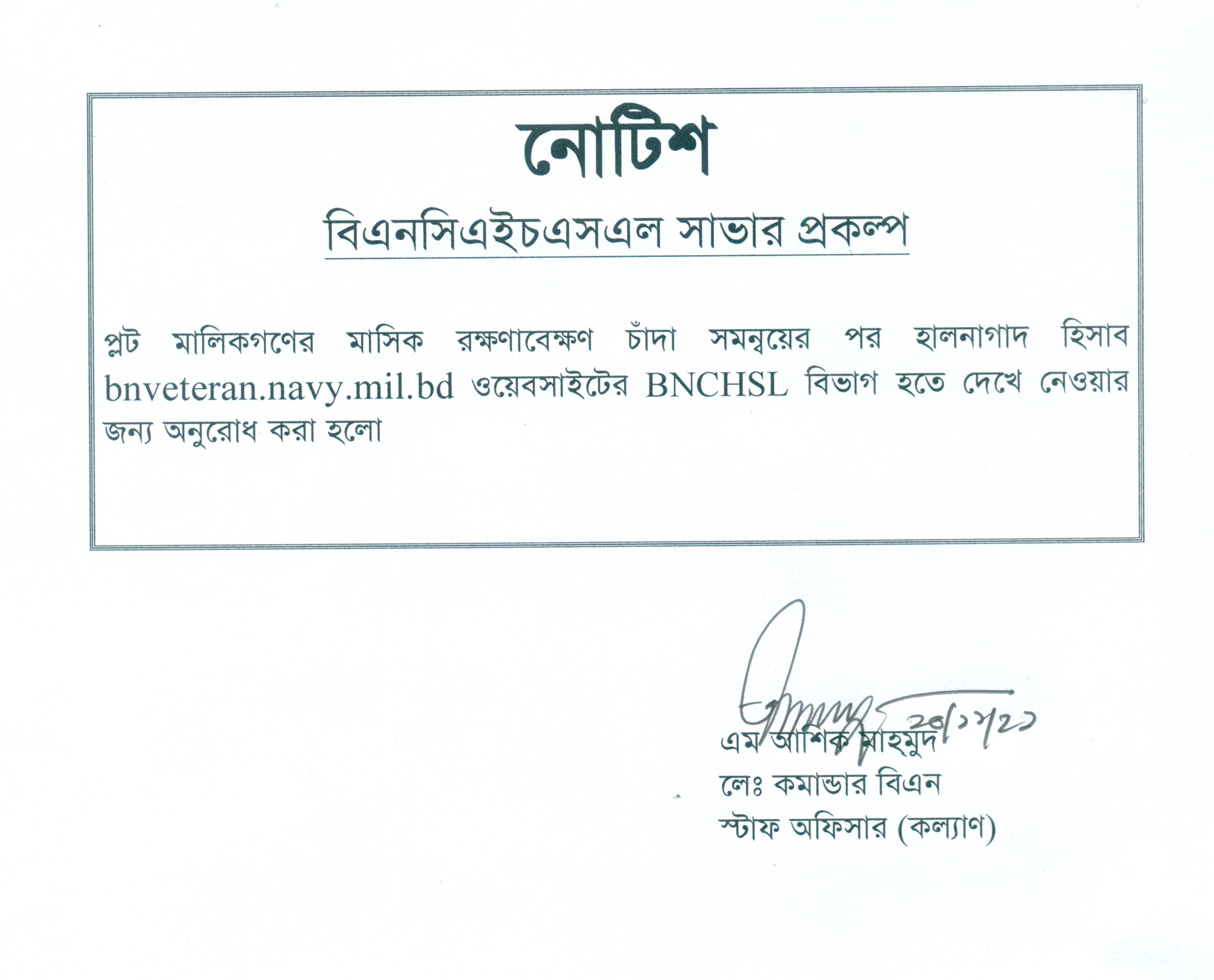 প্লট রক্ষণাবেক্ষণ চাদা নগদ এবং বিকাশের মাধ্যমে প্রেরণের প...