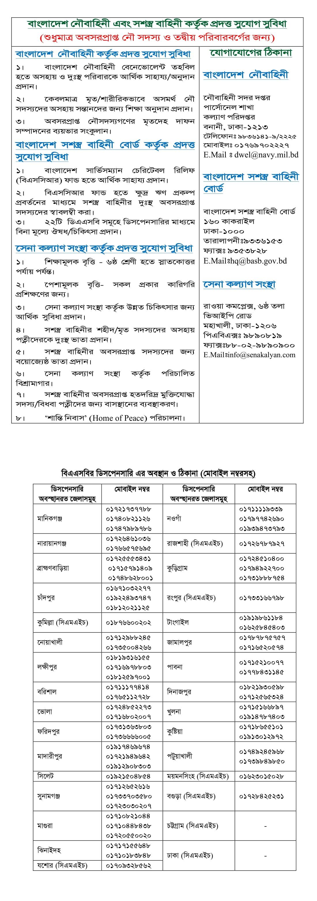 বাংলাদেশ নৌবাহিনী এবং সশস্ত্র বাহিনী কতৃক প্রদত্ত সুযোগ স...