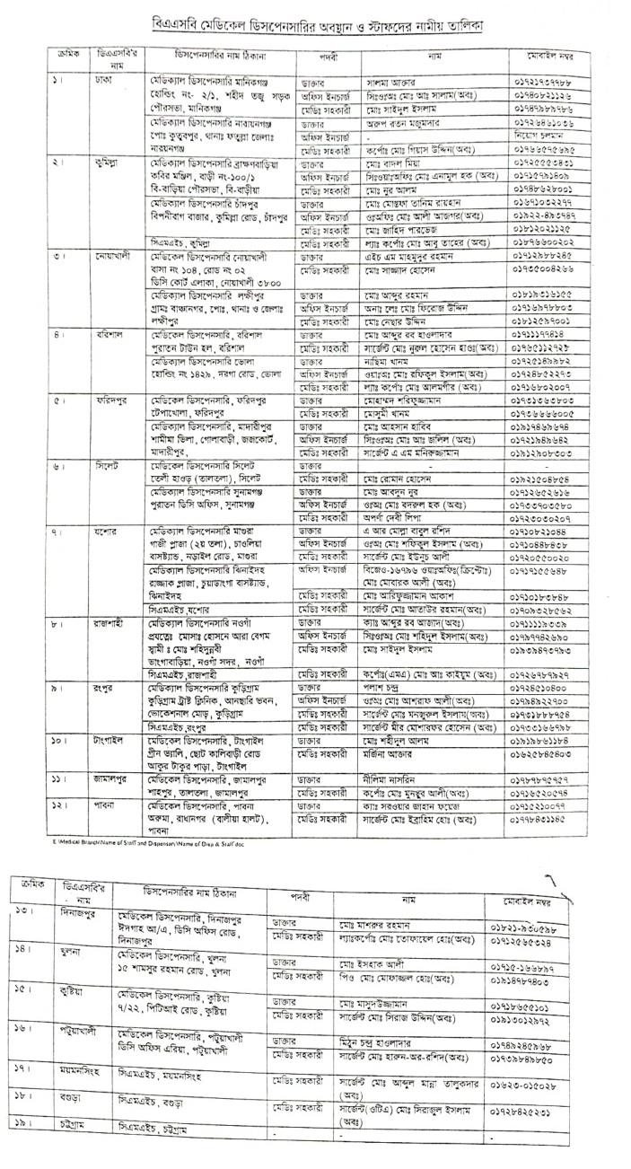 বিএএসবি ডিসপেনসারি লিস্ট