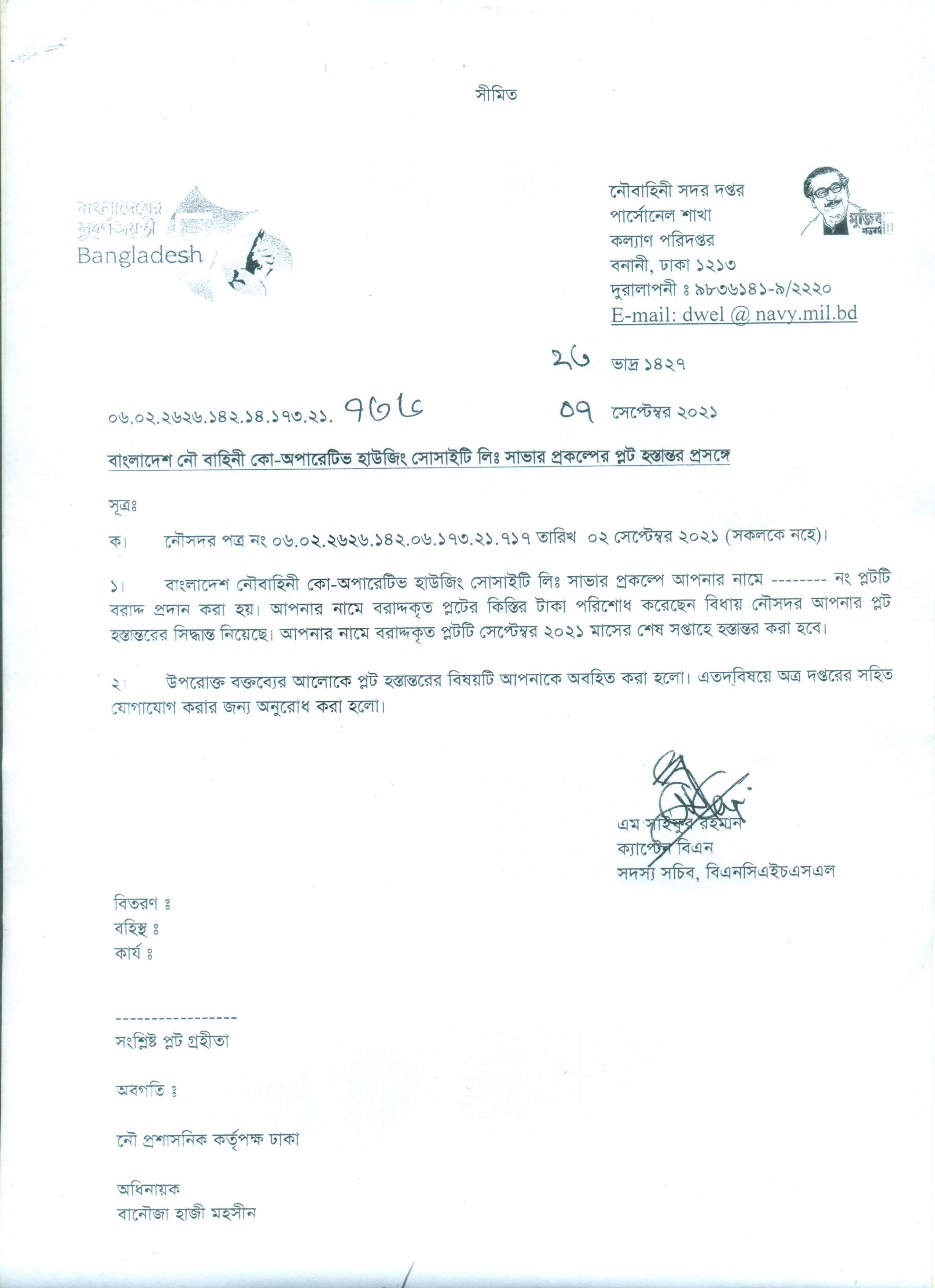বিএনসিএইচএল সাভার প্রকল্পের প্লট হস্তান্তর প্রসঙ্গে